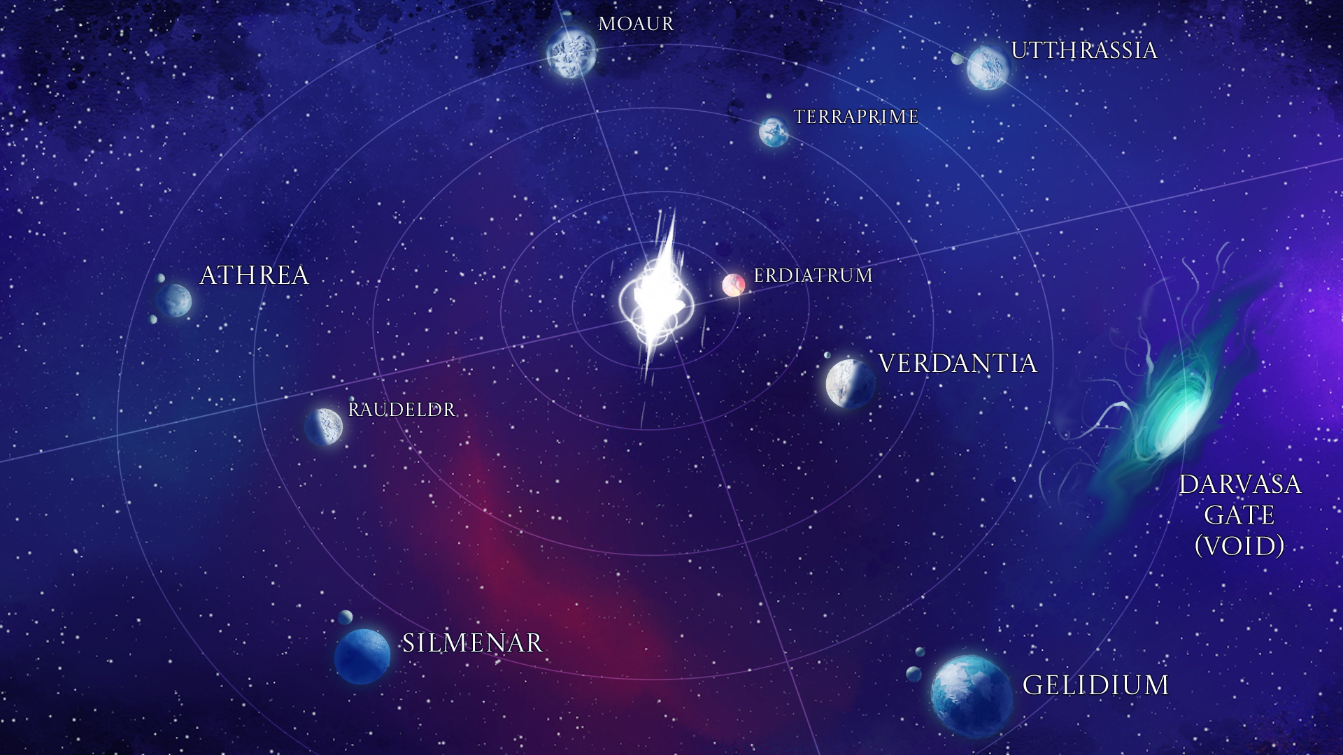 A frozen and desolate world where glaciers stretch to the horizon, and the wind cuts like blades. The sunlight is barely a faint glimmer in the sky, much like Erdiatrum, but with the distinction that Utthrassia is the outermost planet in the system. Both Gelodians and Aracniums inhabit this icy expanse.