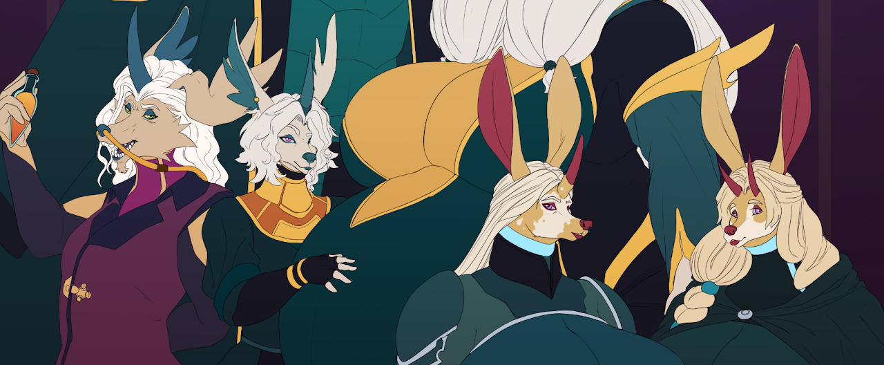 Are an ancient race of canid aspect and androgynous aura, whose ethereal beauty and arcane wisdom have made them, through countless generations, living symbols of nobility, poisoned by pride. Their legacy, wrapped in opulence and forbidden knowledge, stands atop a foundation of decadent splendor.